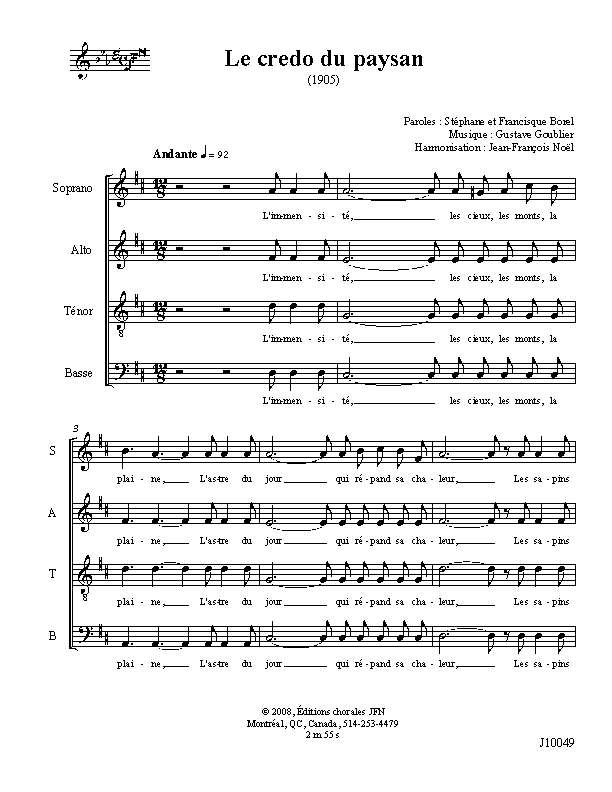 Harmonisation : Jean-François Noël